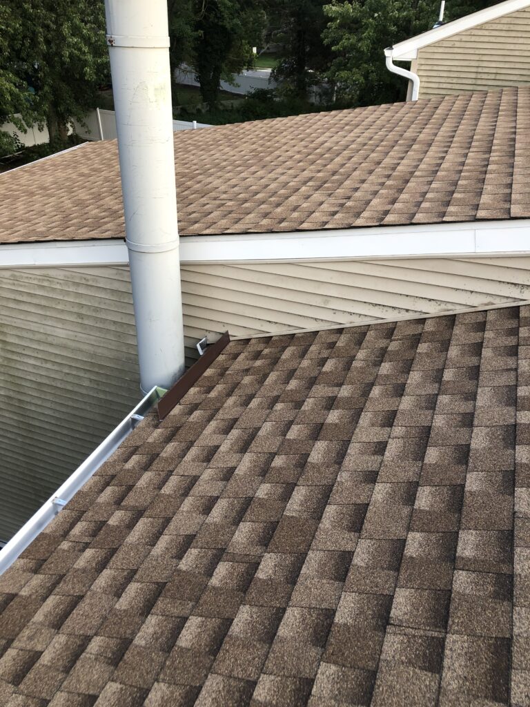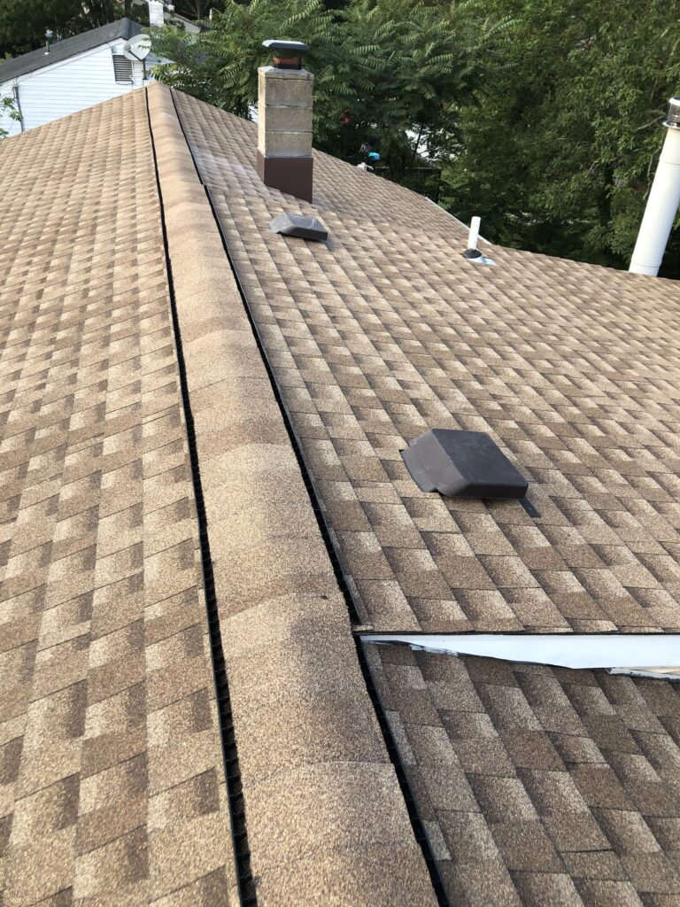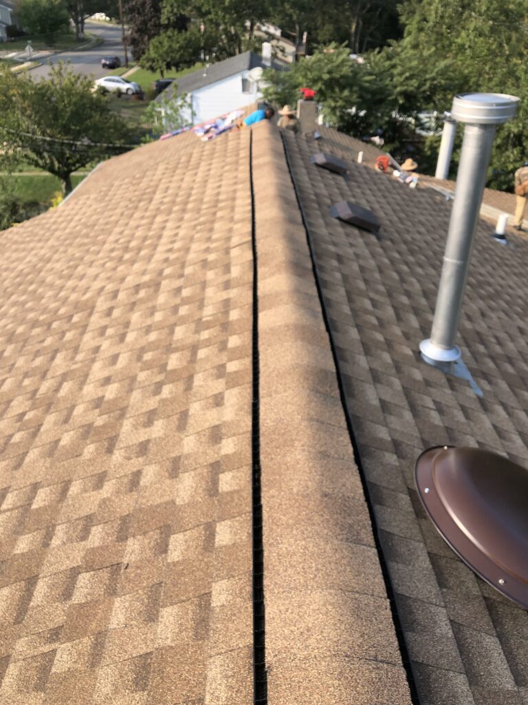 NEW ROOF AND GUTTERS INSTALLATION , HOWELL NJ 09/16/22 TEAR OFF TWO LAYERS INSTALL GAF TIMBERLINE LIFETIME WARRANTY . COLOR SHAKEWOOD. INSTALLATION GAF SNOW COUNTRY RIDGE VENT SYSTEM RE FLASH THE CHIMNEY WITH BROWN ALUMINUM